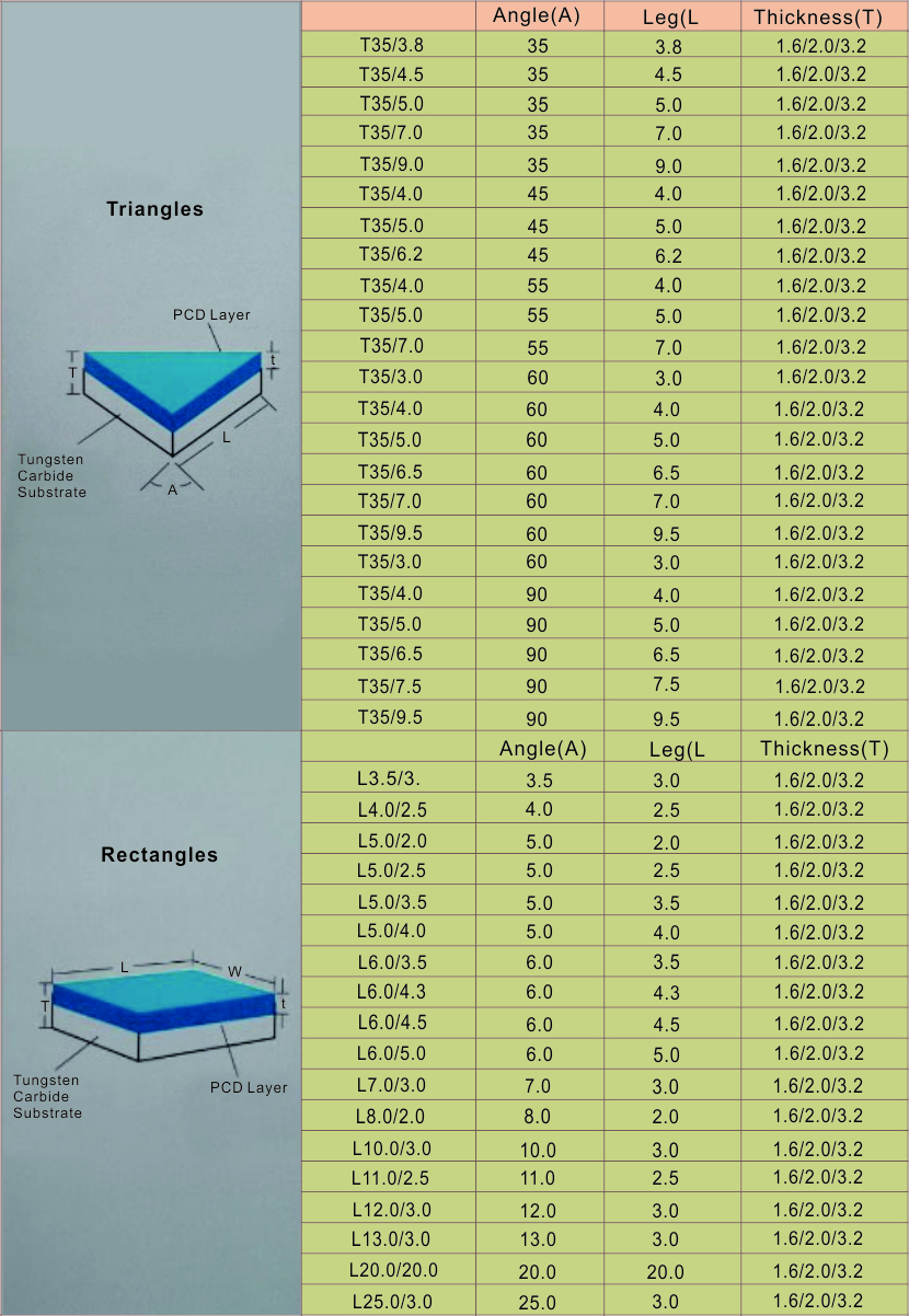 PCD Blanks provide the hardness, abrasion resistance and thermal conductivity of natural diamond, combined with the toughness of tungsten carbide. The work piece processed by PCD has good surface finish. It is an ideal tool material for its long life and high efficiency.
