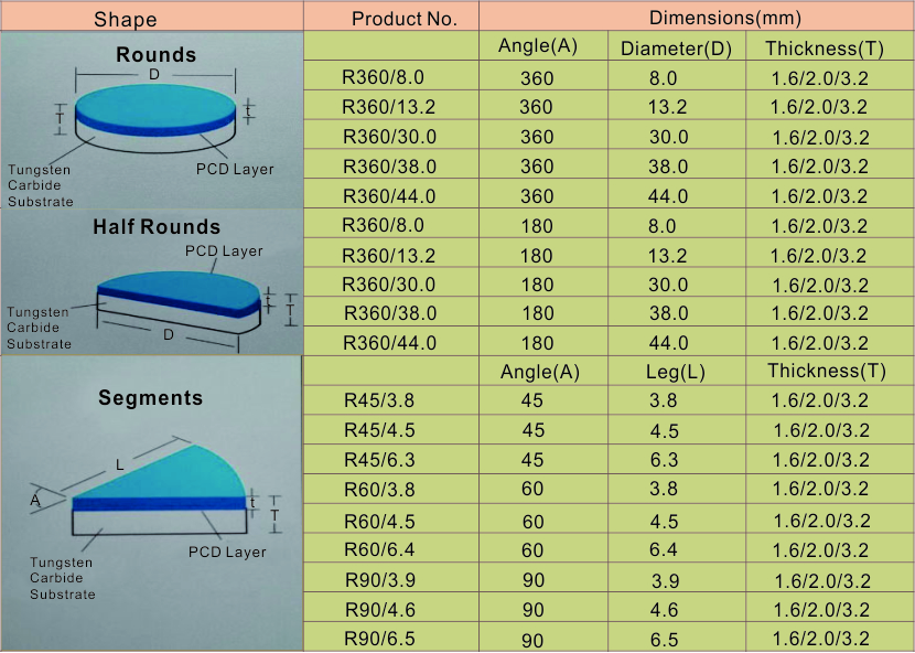 PCD cutting tool blanks are produced by sintering selected diamond particles at high pressure and high temperature, and consist of diamond layer and tungsten carbide substrate.