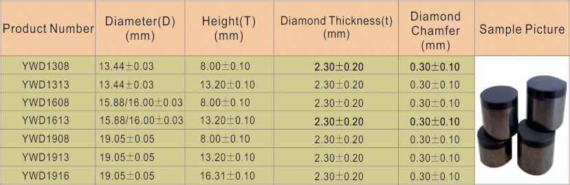 Yinwang PDC (polycrystalline diamond compact) cutter series is produced by using the higher degree of diamond powder and tungsten carbide substrate. Which makes the PDC cutters have higher hardness and wear resistance. We adopt many types of structure of the interface between diamond layer and tungsten carbide substrate, and use the latest technology so that effectively reducing residual stress of PDC, while make the interface combination firmer and more symmetrical. Here below is the features of Yinwang Cutters: