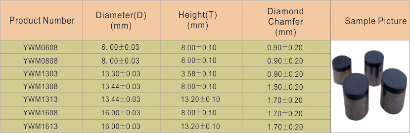 Yinwang PDC cutter for mining applications, is widely applied to geological prospecting, blast-hole drilling, slant-hole and crossings drilling, and other mining-related drilling or cutting applications. In addition, YWM series is suitable for core and non-core bit in the drilling of complex formation as well as the cutting of various rocks and refractory material.