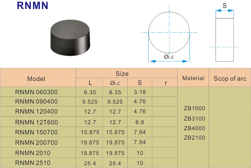 RNMN series overall polycrystalline cubic boron nitride blade has a very high impact resistance, abrasion resistance and high removal rate of billet, can be in the inside and outside the circle, end face of high manganese steel mill roller rough machining, finish machining, do not need to tool change, one time, greatly improving the processing efficiency.